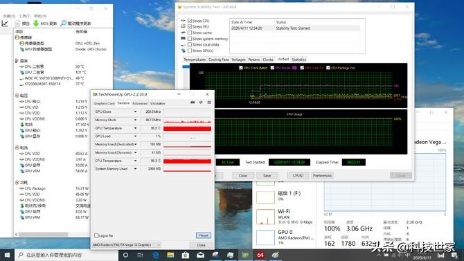 在约20分钟的烤机模式下,CPU温度99°,功耗15W,实际上根据在游戏运行中的功耗、占用比对比来看,依然没有达到最高35W的功耗,因为这里面还包括集成显卡占用的资源,所以CPU实际上也是在15-35W之间正常波动的。也就是说最终的功耗与应用需求是相关的。