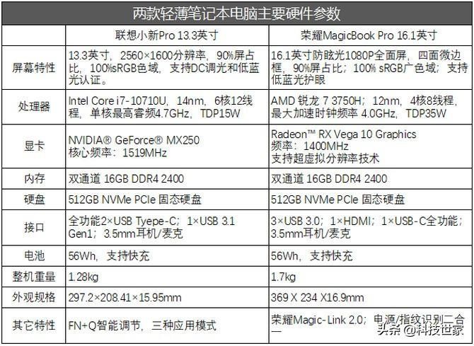 我们就以两款当前热门轻薄本进行对比,一款是荣耀MagicBook Pro 16.1英寸,一款是联想小新Pro 13.3英寸。这两款笔记本除了屏幕尺寸的不同,在核心配置上,荣耀MagicBook Pro搭载的是AMD 锐龙 7 3750H平台,而联想小新Pro则是十代Core i7-10710U,都是最新的处理器平台。但是联想小新Pro搭载了MX250独显,两款均配备16GB DDR4/512GB固态硬盘,先不说这两款笔记本性能怎样,在价格上就差别了将近1600元,我们不禁要问,联想小新Pro凭啥卖这么贵?