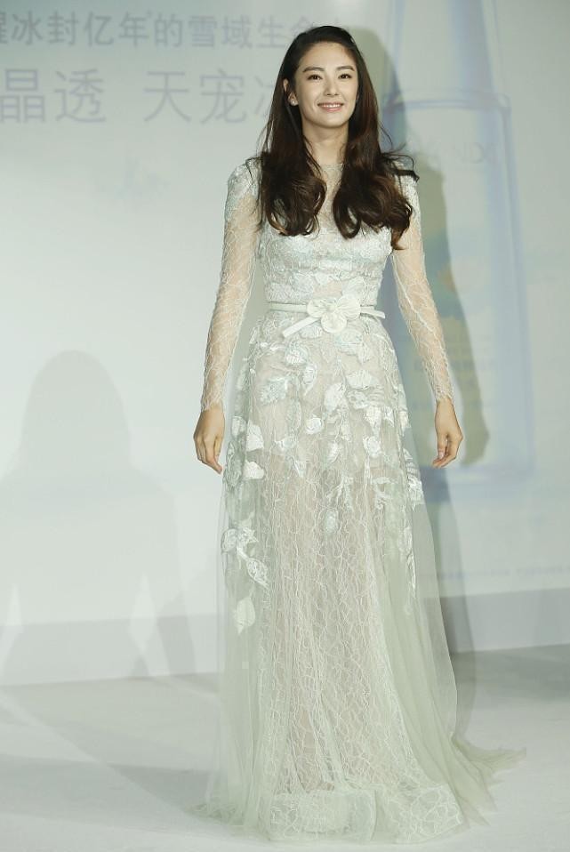 张雨绮身材丰满却挺敢穿,透视蕾丝拼接裙秀出气质,美得真高调
