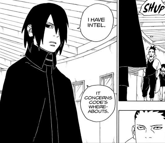 鹿丸与堇笕继续走着,佐助突然出现在了他们面前,虽然失去了轮回眼,没有了自由穿梭空间的能力,但佐助的工作性质似乎一直都没有变,他还在探查着考德的下落,并找到了有关考德的藏身之处。