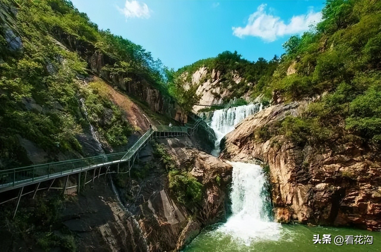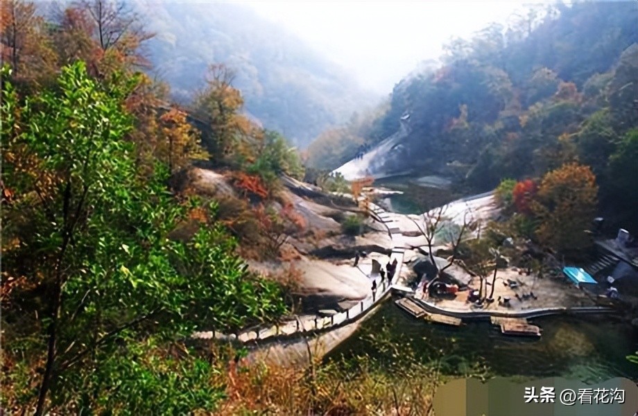 20.西峡县的著名景点-西峡龙潭沟景区。位于河南省伏牛山脉腹地的西峡县双龙镇,距西峡县城30公里。景区景点集中,瀑布密集,融山秀、石奇、水澈、林茂、潭幽于一体,被誉为“中原一绝,人间仙境”。伏牛山世界地质公园核心景区于2011年成功被评为国家AAAA级景区。景区全长12公里,自然落差近千米,整个山体犹如两条巨龙盘踞,分别显现龙首、龙口、龙角和龙身。山体两岸石壁陡峭,花岗岩体雄奇壮观.景区内聚集了大小19道瀑布和72潭,群瀑叠落飞泻直下,潭深水幽奇石遍布,整个山体如两条巨龙盘卧,以瀑密、石奇、潭幽、水澈、林茂组成完整的风景体系,被誉为“中原第一瀑布群,天然奇石博物馆”。潭沟全长12公里,景区5公里,自然落差近千米,整个山体犹如四条巨龙盘踞。峡谷自下而上形成多处梯式瀑布共计19个,大小潭穴72处,一瀑一潭景色壮观。