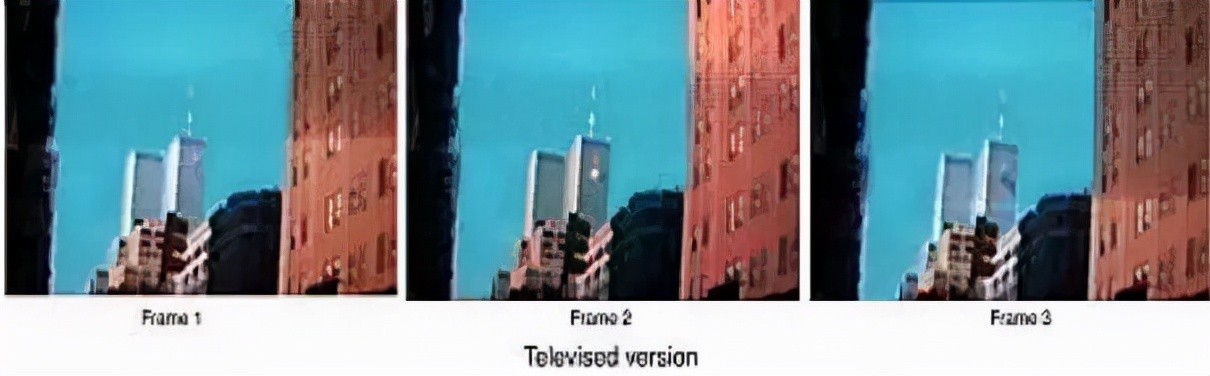 摄影师不自觉地拉高了手上的摄像机, 刚巧摄像机对准了世界贸易中心双塔的北楼。