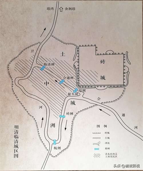 元代至元二十六年(1289年)开凿的会通河临清段,东起鳌头矶,西至临清闸入卫处,全长1.2公里,因临清地处会通河与卫河相接,临清成为了会通河最北河段的水利枢纽。