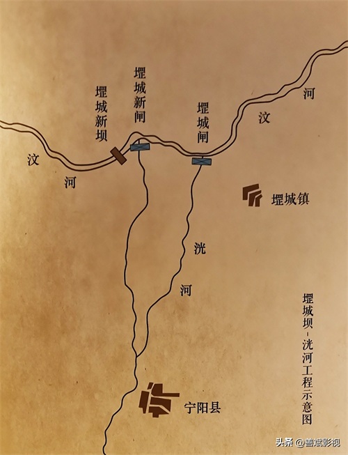 在堽城和戴村间南北横亘五里的河床上修筑两个大坝,称为戴村坝-小汶河工程,