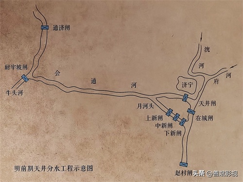 济州河段是以泰安的汶河水和泗河水为水源,先将两河水引到济宁任城再南北分水。