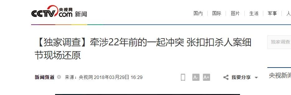 信息源:《【独家调查】牵涉22年前的一起冲突 张扣扣杀人案细节现场还原》央视网