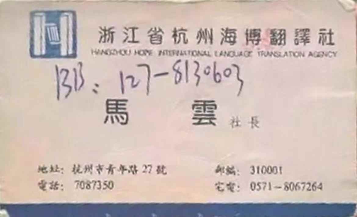 1994 年 1 月,还在大学教书的马云按捺不住创业的心,成立了海博翻译社,这可是杭州第一家专业翻译企业。但当时翻译市场不成熟,生意差到房租都交不起 为了撑下去,马云甚至把办公室隔出一半出租。合伙人一个个离开,只有他咬牙坚持到翻译社盈利。那时他的名片很普通,就是姓名、电话和公司地址。