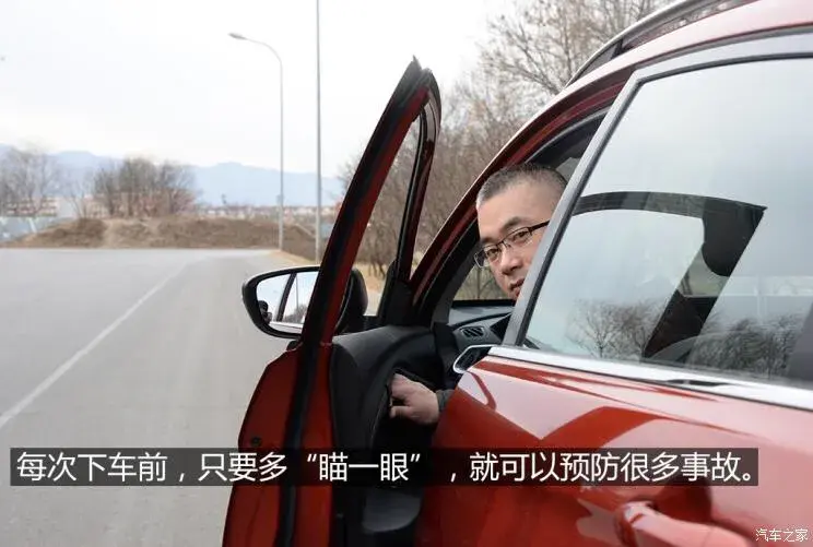 ●上、下车时,充分观察车辆周围环境后,做到“二次开车门”,即先把车门打开一点空隙,然后再次观察身后情况,再打开门;