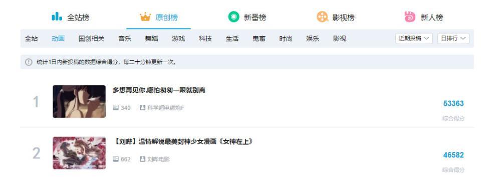 一夜之间,迅速登上B站当日综合榜动画TOP1,原创榜动画TOP2,真是可喜可贺!