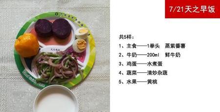 从细节描述中看到,您的早餐包含红薯、紫薯、鸡蛋、玉米、青瓜之类的食物。