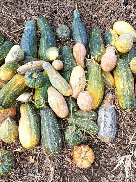 南瓜的品种很多,长相也多,有圆形和长形的,我们选择长形南瓜,主要是这种南瓜切片后,可以用绳子或者竹竿,穿起来晾晒。