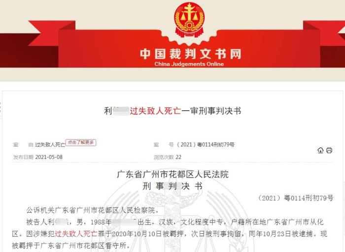 2025年5月,利某洪因涉嫌过失致人死亡被花都区检察院提起公诉,该案由花都区法院公开审理。