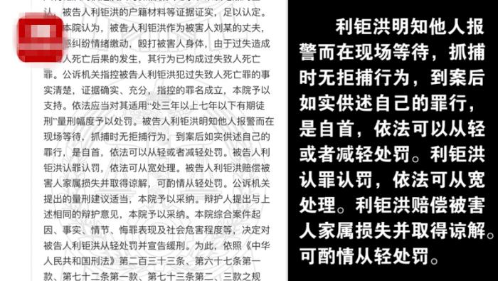 最后,利某洪以过失致人死亡罪被判处有期徒刑三年,缓刑四年。
