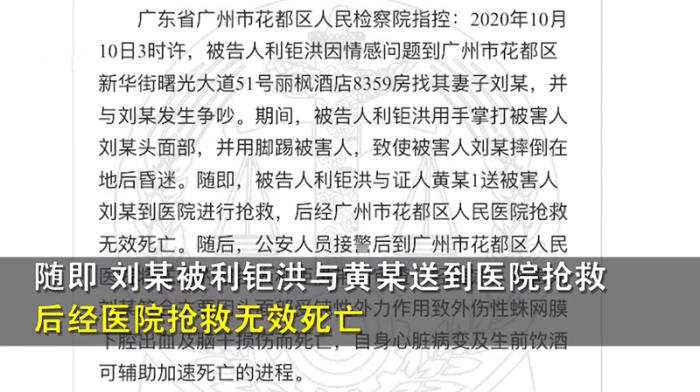 见妻子瘫软在地,气头上的利某洪惊慌失措,立即与第三者黄某合作,将妻子送往花都区人民医院抢救。由于头部受到钝性外力打击,妻子的蛛网膜下腔出血和脑干损伤。实际上,刘某生前心脏就一直存在旧症,当天晚上喝了酒,又遭到丈夫暴打,因而丧命。