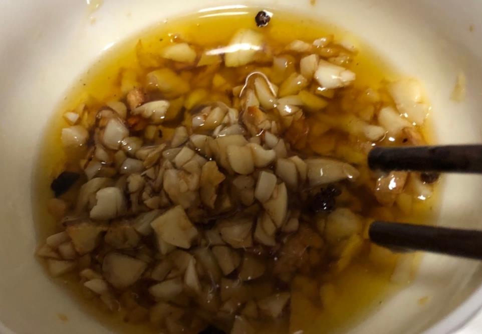 姜蒜和干辣椒切成末放入碗中,然后往碗中倒入适量的盐、黑胡椒粉,搅拌均匀。锅中放适量的食用油,烧热后将其倒进刚才调好的蒜蓉内,使其香味散发出来。