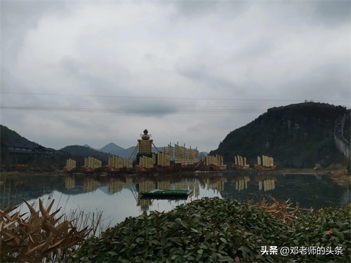 今天在湖面上,停着许多的帆船。这是以往青岩古镇没有的风景。