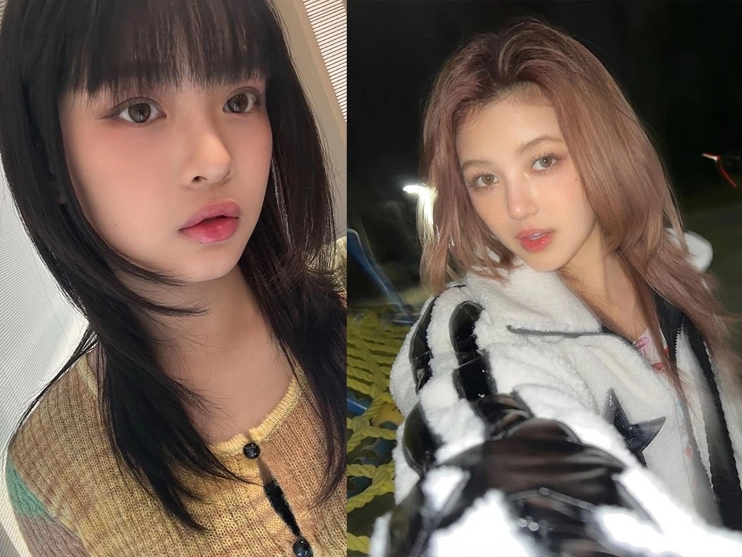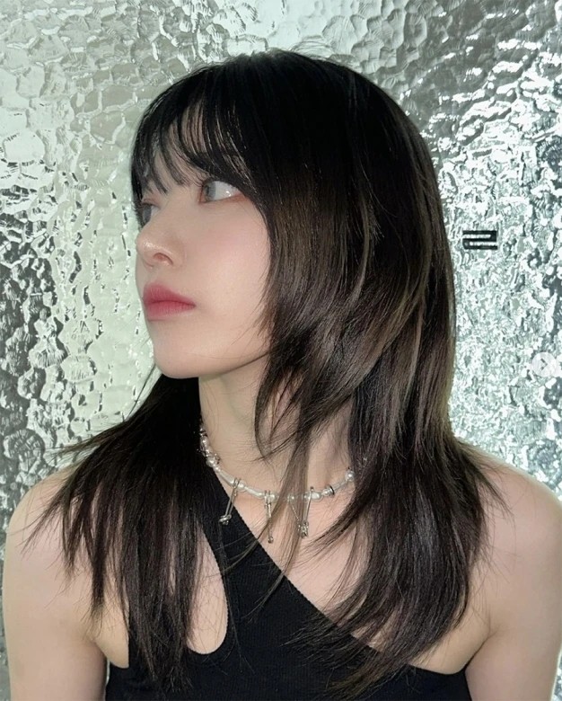 这种中长发狼尾剪看起来有种随性自然的感觉,NewJeans成员Hanni向Danielle 也换上这种发型,分别示范了短刘海和中分刘海的两种风格!