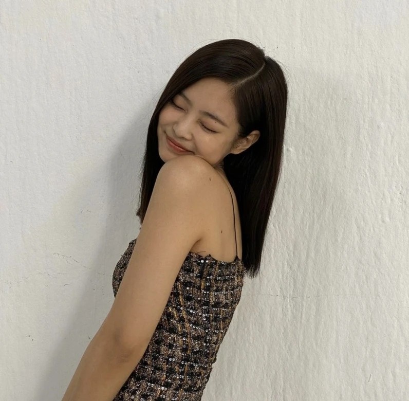 「人间香奈儿」Jennie形象百变,早前换上一头清爽中长发,自然简单的直发造型更显青春有活力,身穿吊带Tweed裙配以俏皮表情,可爱程度让人忍不住想把她抱紧处理!