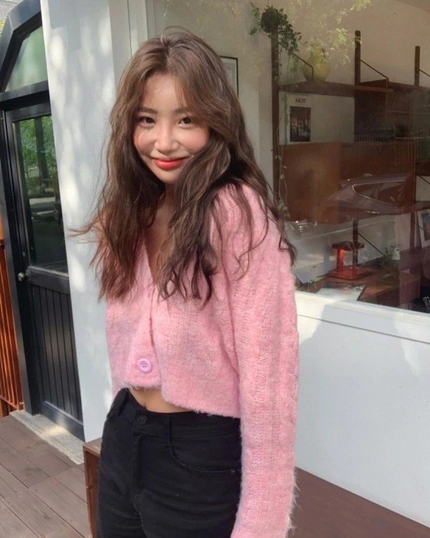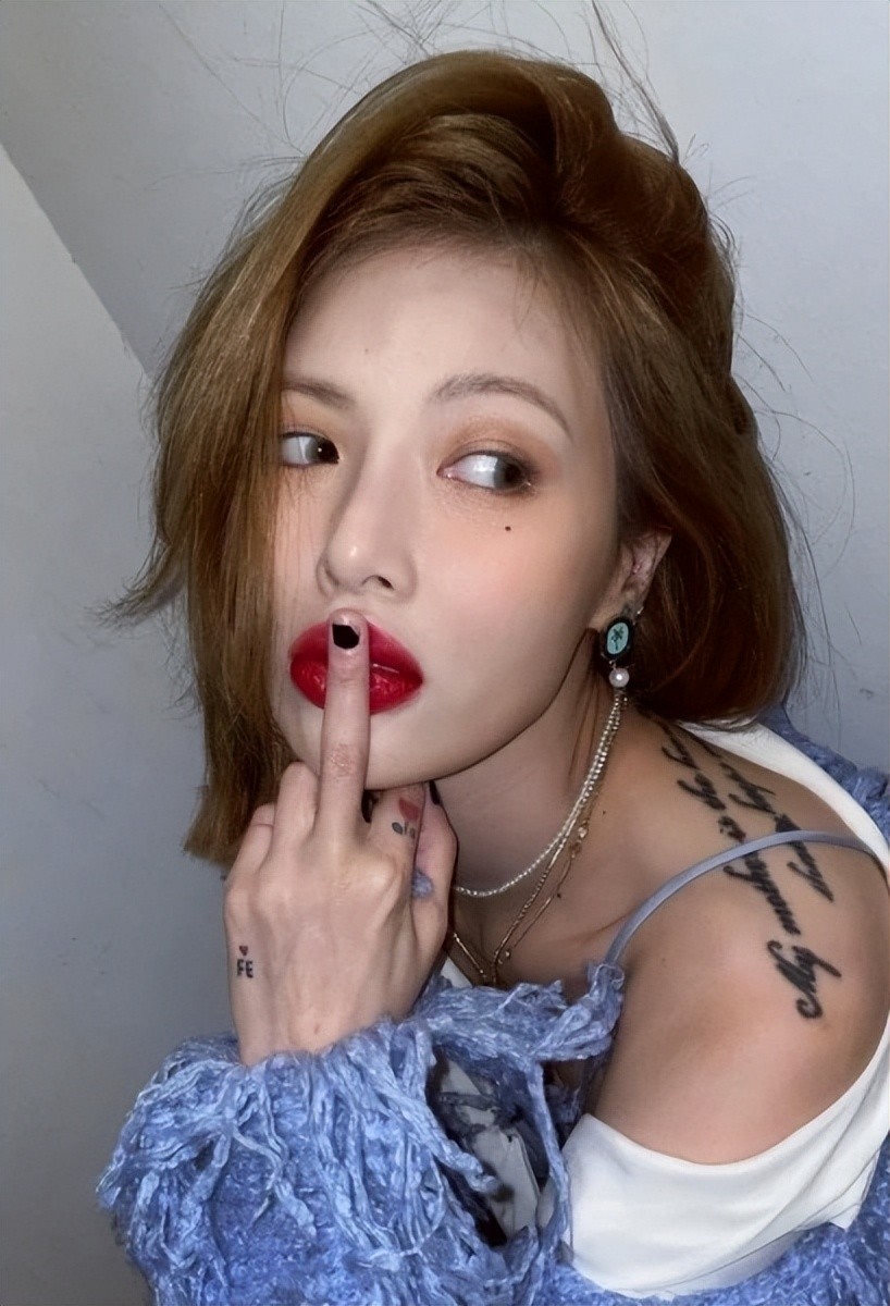 泫雅几乎没有剪过短发,反而爱转颜色,她一刀剪换成中长发配上秋天染亚麻金色发色,中长发层次是长度落在锁骨,很少层次的中长发,当她把刘海直接大旁作91分界,轻易地散发出随性性感气息。