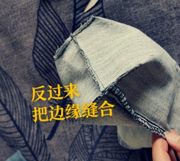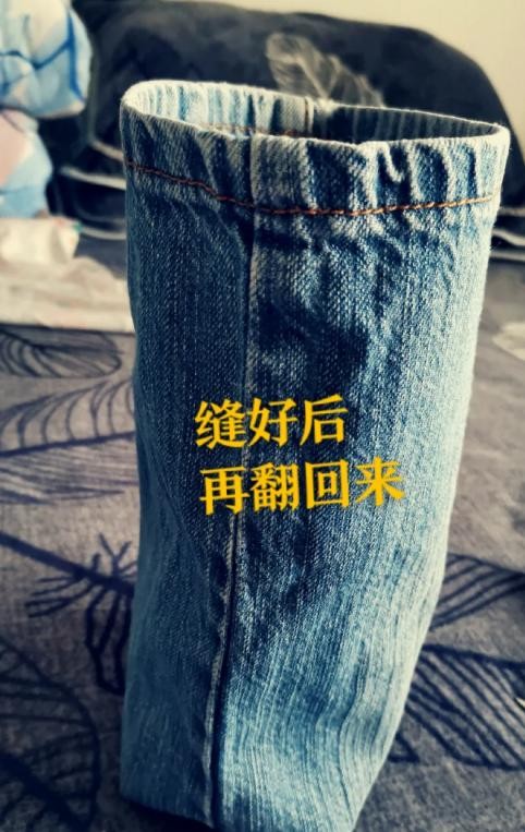 缝好了之后,把牛仔裤反过来。