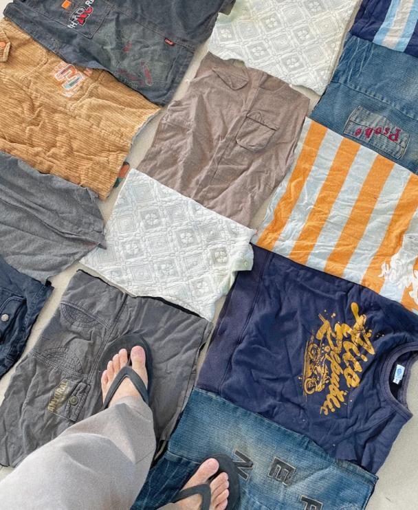 把准备好的旧衣服全都拿出来。
