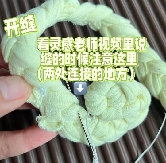 第三步:把旧衣服编成的麻花辫用针线缝制一下,一圈圈缝好