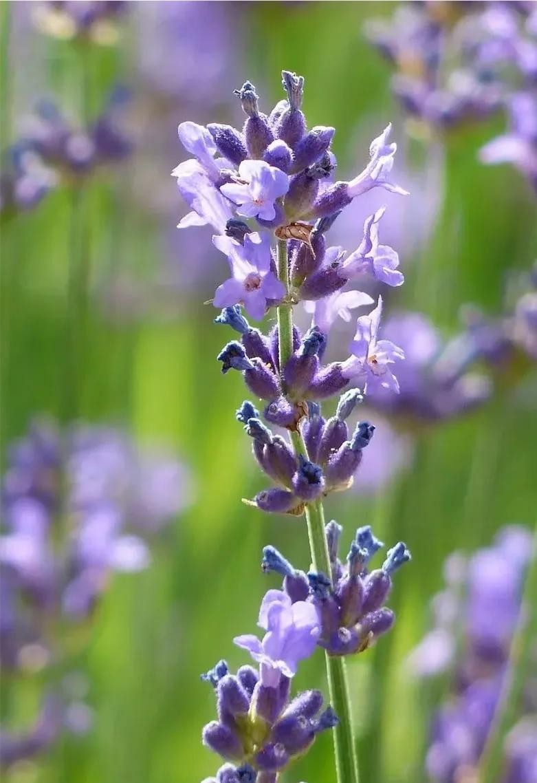薰衣草的浅紫色是很有乐趣的,感觉是很不经意的,据说有让人回忆春天或是年青时的往事的感觉。而深紫色是非常沉重的,象是一股不可抵抗的邪恶的力量。紫色象征着魔术,神秘,水晶和神话中的人物。紫色充满了神秘感。