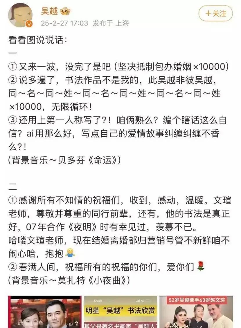吴越率先站出来辟谣,“坚决抵制包办婚姻 ×10000”。