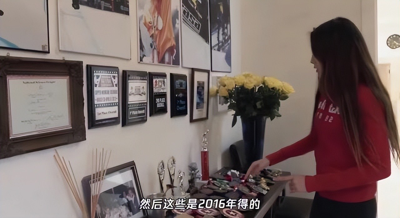 当然,在客厅的北侧,还预留出一面墙和一张桌子,专门用于放置谷爱凌的奖杯、奖状,密密麻麻,全都是谷爱凌努力成果的见证。