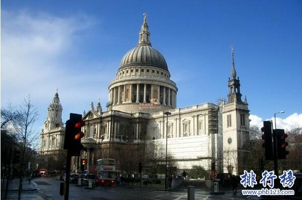世界最著名的五大教堂排名第四位,是位于英国的圣保罗大教堂,是英国第一大教堂,也是世界第二大圆顶教堂。圣保罗大教堂最早在604年建立,后经多次毁坏、重建,由英国著名设计大师和建筑家克托弗.雷恩爵士,在17世纪末完成这伦敦最伟大的教堂设计,整整花了45年的心血。圣保罗教堂另一个建筑特色,是少数设计、建筑分别仅由一人完成,而非历经多位设计、建筑师的教堂之一。教堂内还有一个雷恩的墓碑,上书“如果你在寻觅他的纪念碑,只需要看看周围”。英国圣保罗大教堂华丽的巴洛克风格在宗教建筑中独树一帜,从古至今都是著名的宗教圣地。