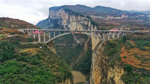 之后,再次看到鸡鸣三省大桥是在媒体上了。2019 年 7 月 7 日,鸡鸣三省大桥主拱圈合龙。当天,中央电视台新闻频道《新闻直播间》进行现场直播。接着,中央电视台多个频道的多个栏目播出这条新闻。令人没有想到的是,当晚中央电视台《新闻联播》通过简讯进行报道。第二天,《人民日报》头版播出图片新闻。一时间,新华社、中新社等媒体纷纷报道或转载,这样的传播强度和信息广度,让鸡鸣三省大桥家喻户晓,人人皆知。合龙的鸡鸣三省大桥主拱圈气势恢宏,犹如一道彩虹镶嵌在峡谷两岸。
