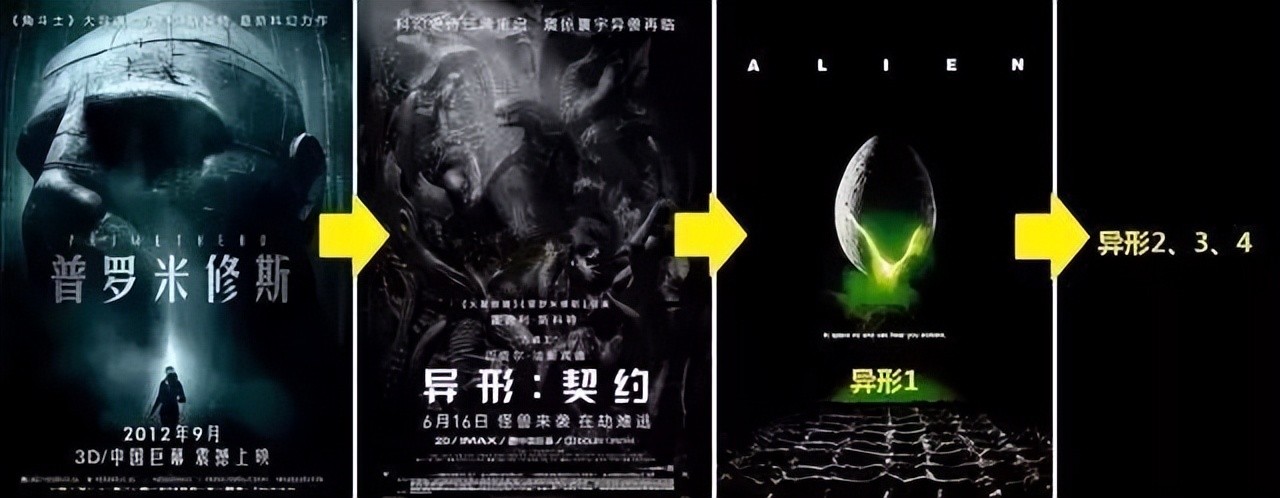 “异形系列”电影,迄今为止一共6部,包括《异形》1-4和前传《普罗米修斯》与去年刚上映的《异形:契约》,正确的观影顺序如下: