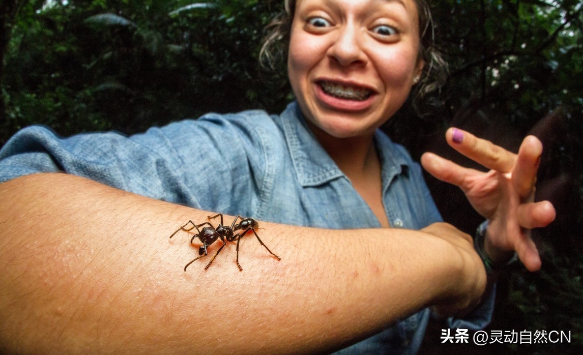 但别担心,子弹蚁不轻易发动袭击。它们通常会先用它们的强大下颚夹你一夹(也非常疼),然后才会动用它们的终极大招。再提醒一句,受了子弹蚁的“关照”后,它会释放一种信息素,让周围的蚂蚁集体发起攻击——俗称“群殴”。