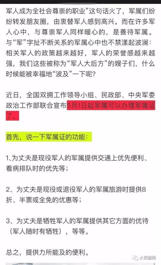 【提醒】:近年来,国家出台了许多惠军政策,赢得广大官兵、军属点赞。当各种 " 惠军政策 " 信息出现在社交平台上时,很多人情不自禁转发点赞。不法分子也就是利用这种心理来诱导大家转发,获取利益!