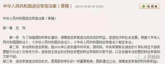 谣言三:《中华人民共和国退役军官法案(草稿)》公布