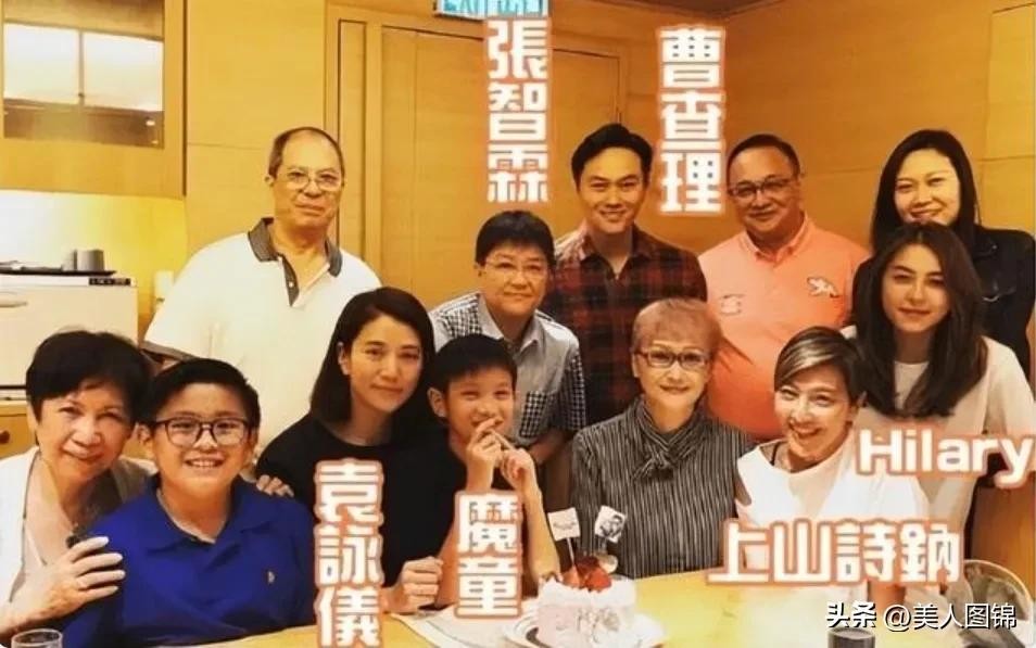 曹珍妮的父亲曹约翰、弟弟曹查理、母亲怀里抱的小妹的女儿上山诗钠,以及她儿子张智霖和儿媳袁咏仪都是演员,她的孙子魔童如今也越来越帅气。