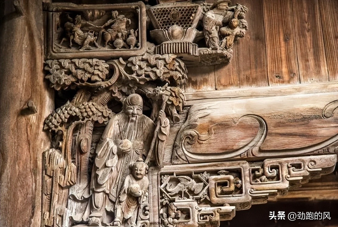 木雕是山西民居装饰中不可或缺的一部分,主要应用于梁枋、斗拱、雀替、门窗等部位 。在梁枋上,木雕通常以花卉、动物、人物等为题材,采用圆雕、浮雕、透雕等多种技法,雕刻出栩栩如生的图案 。这些图案不仅具有装饰性,还蕴含着丰富的文化内涵 。例如,在一些民居的梁枋上,雕刻着 “八仙过海” 的故事,寓意着吉祥如意、神通广大;还有的雕刻着 “二十四孝” 的图案,宣扬着中华民族的传统美德 。斗拱上的木雕则更加精致细腻,通过巧妙的设计和精湛的工艺,将斗拱装饰得美轮美奂 。雀替上的木雕多以花卉、枝叶为主题,采用浮雕手法,使花卉、枝叶更加生动柔美,富有立体感 。门窗是木雕装饰的重点部位,山西民居的门窗木雕工艺精湛,图案精美,常常采用镂空双面雕、拼斗雕、斗嵌雕等方法,在门窗上雕刻出各种精美的图案 。比如,王家大院的木雕门窗,在正门上雕有 “三星高照”“天官赐福”“麒麟送子” 等人物和图案,寓意着吉祥如意、幸福美满 。