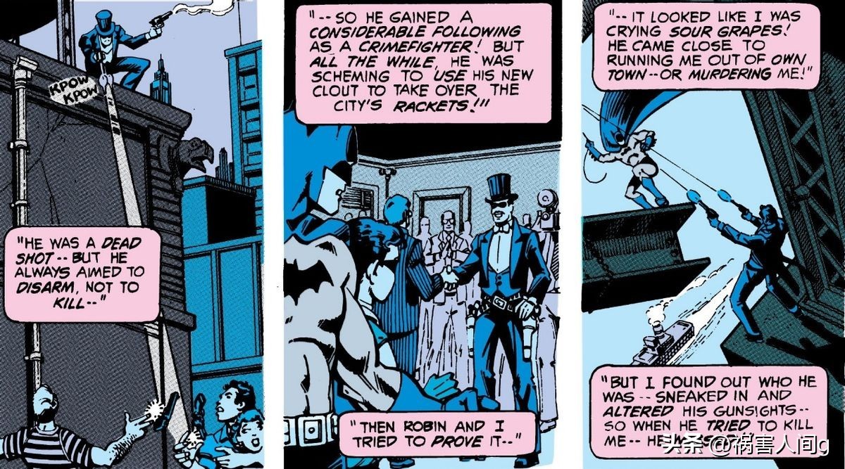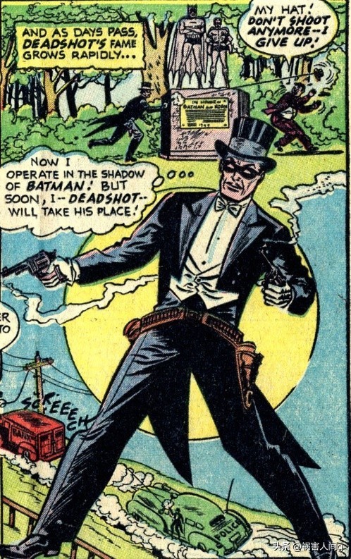 死亡射手首次登场于1950年漫画《蝙蝠侠》#59,但是他只是一个一次性角色,他的设定、外观等方面跟现在我们熟悉的死亡射手都不一样。
