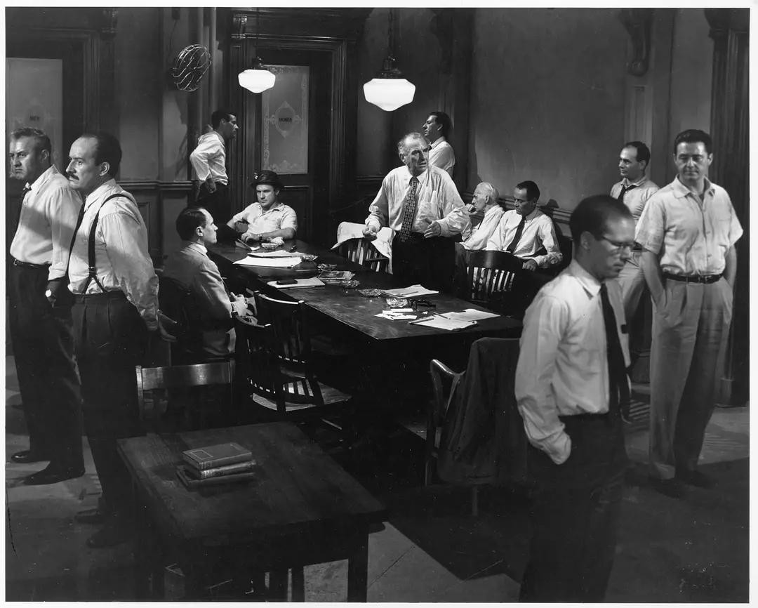 故事讲述了一个在贫民窟长大的男孩被指控谋杀生父,十二位来自不同背景的陪审员在一间封闭的房间内讨论男孩是否有罪,起初几乎所有人都认为男孩有罪,随着讨论深入,疑点逐渐浮现。