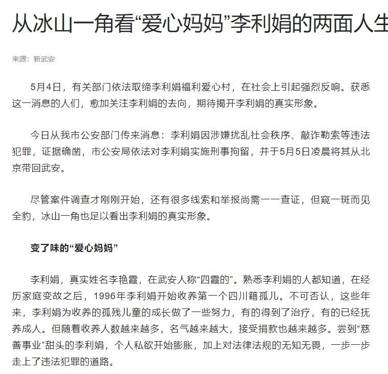 从冰山一角看“爱心妈妈”李利娟的两面人生