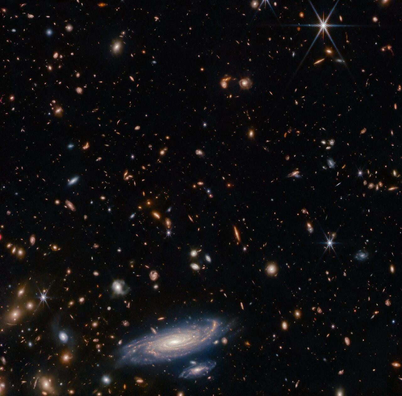 詹姆斯・韦伯太空望远镜拍摄的新照片。距离地球 10 亿多光年、位于武仙座超星系团的螺旋星系 LEDA 2046648