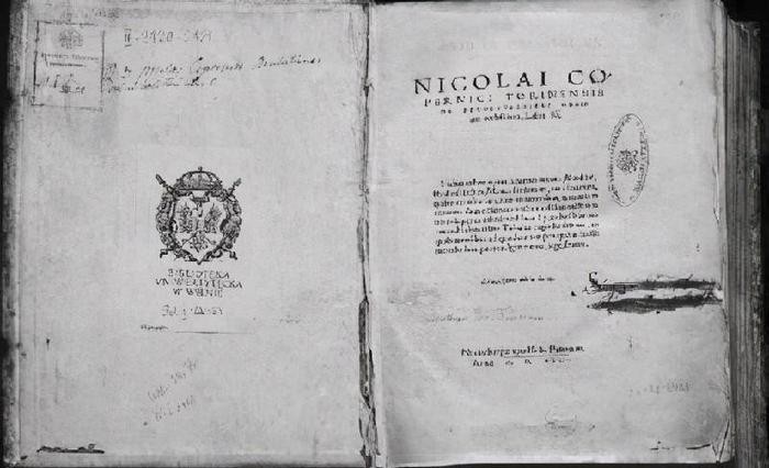 经哥白尼重新整理过的手稿,题为《托伦的尼古拉·哥白尼论天体运行轨道(共六册)》,简称《天体运行论》。1542年书稿付印,那时的哥白尼已经卧病在床,身体极度衰弱。
