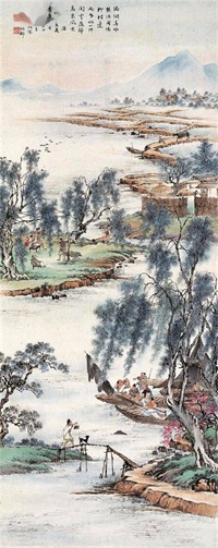 渔樵耕读图 近现代 吴青霞