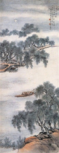 柳岸泊舟图 近现代 吴青霞