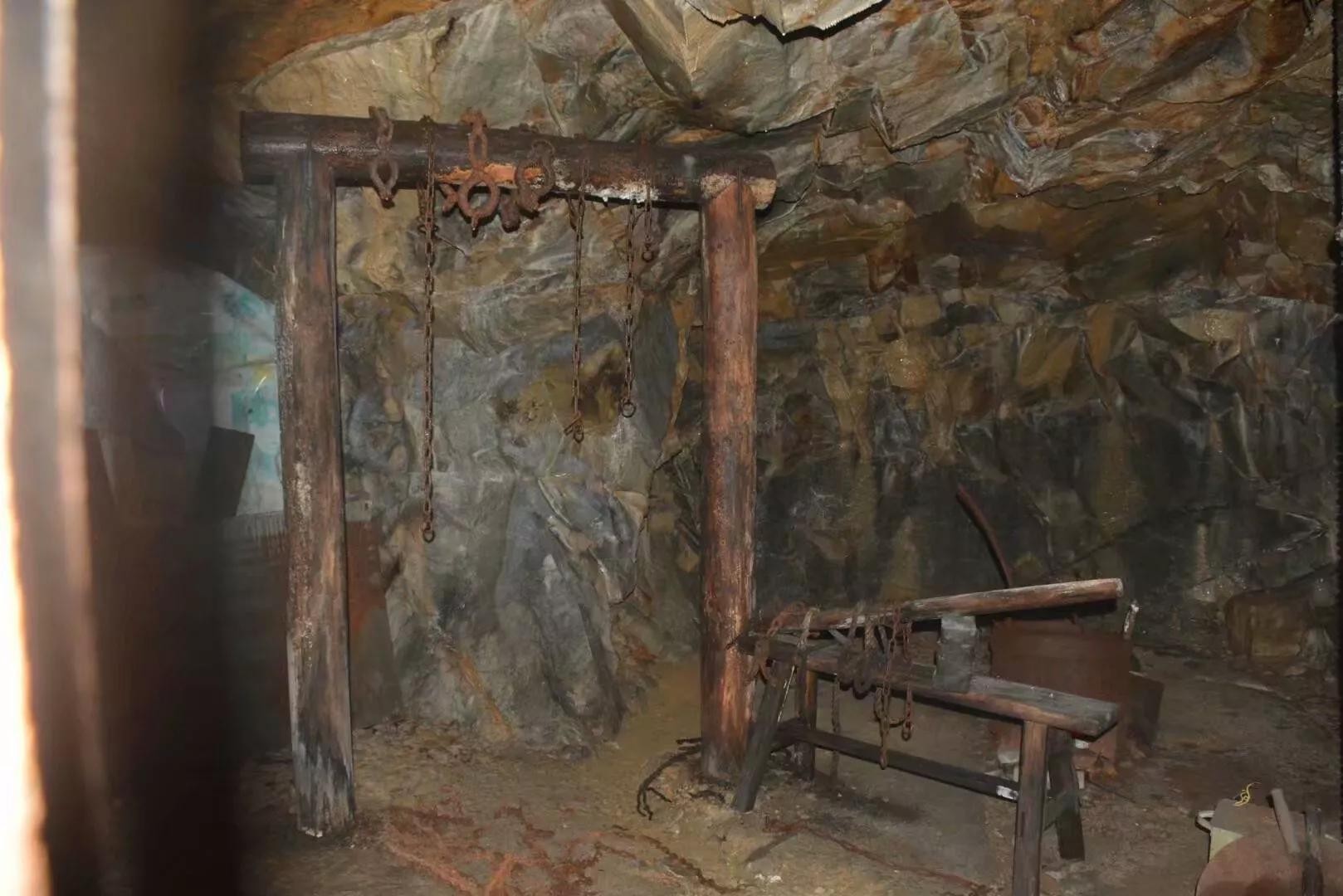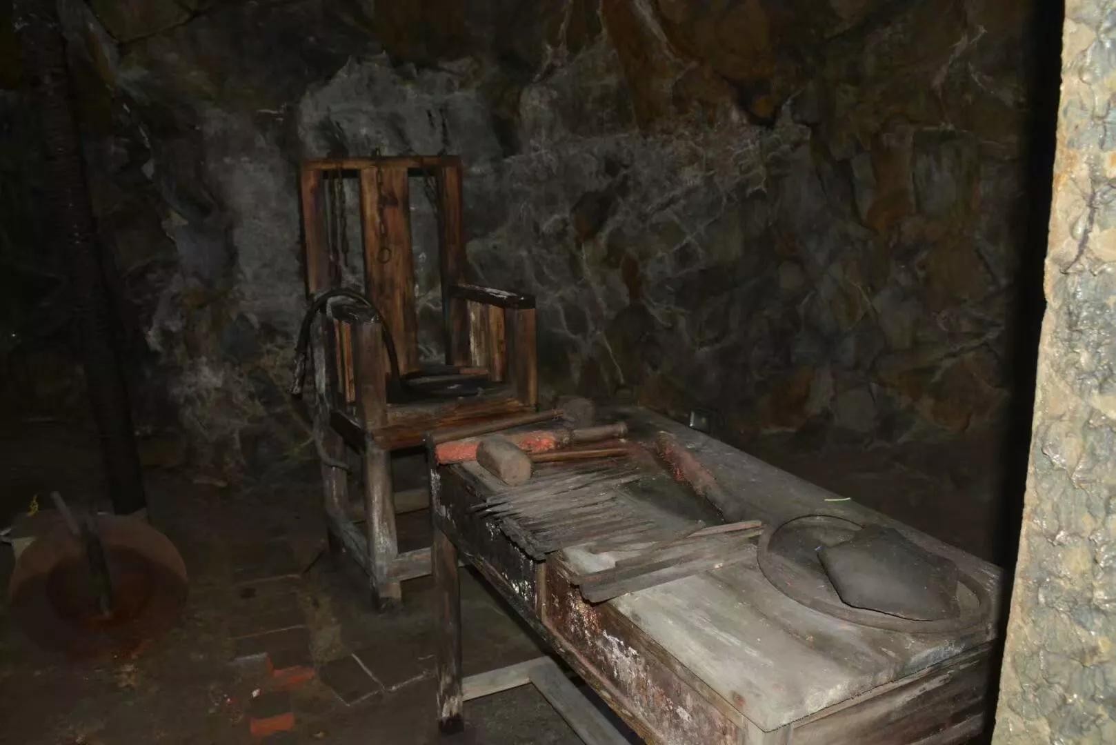 刑讯洞是一个阴森的石洞,里面潮湿黑暗,可怕及了。