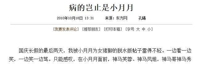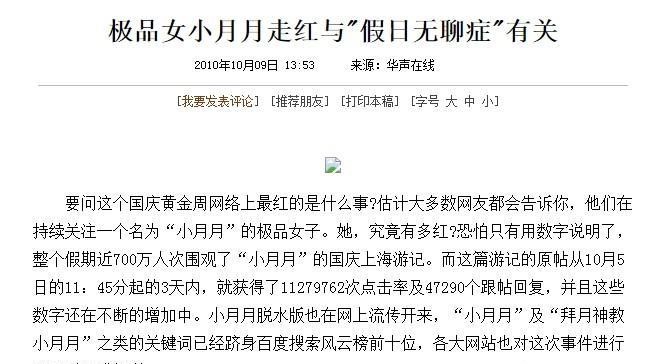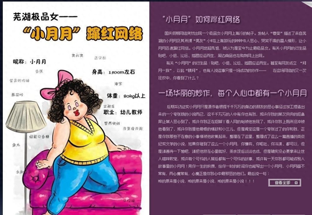 2010年10月5日,天涯论坛上突然涌现一篇名为《感谢小月月,给我带来了这样一个悲情的国庆》的神帖,作者蓉荣以小月月为主角,描述了一段令人难以置信的假期经历。这个帖子以其荒诞离奇的情节,引发了广泛关注,成为当时网络话题的焦点。