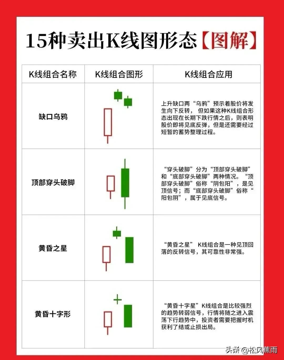记住15种K线卖出形态不被套:黄昏之星、缺口乌鸦、黄昏十字型