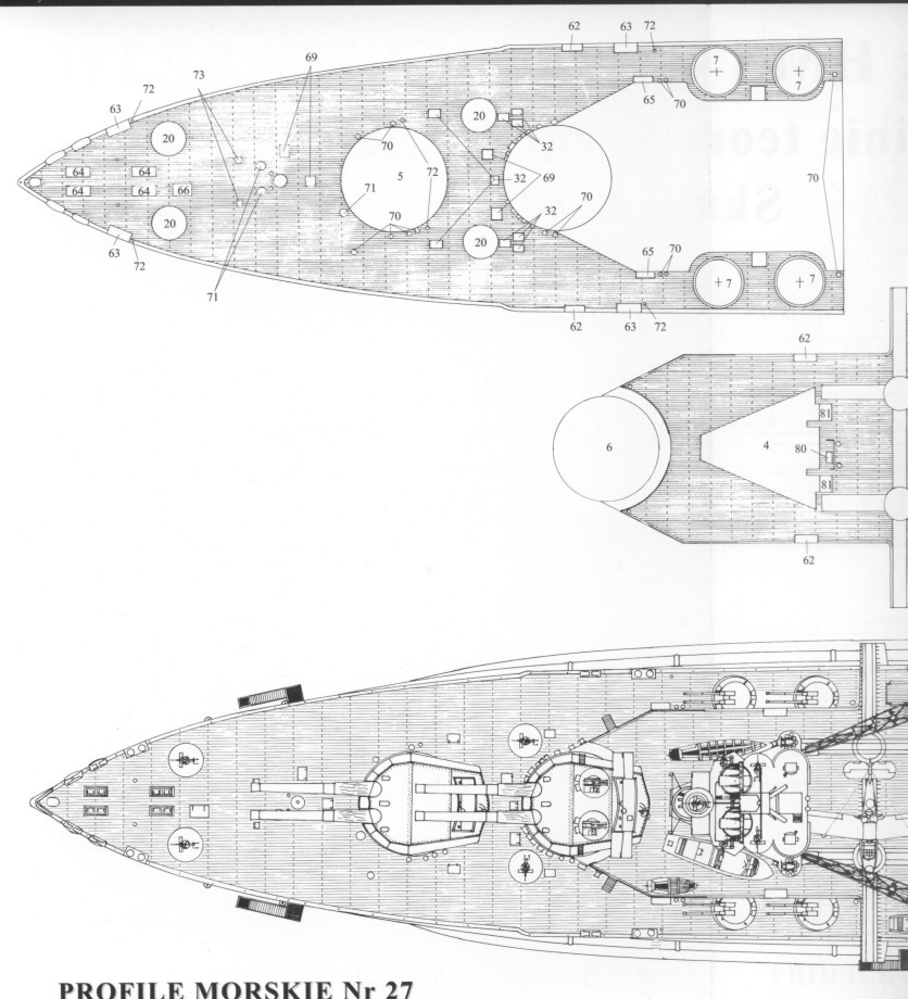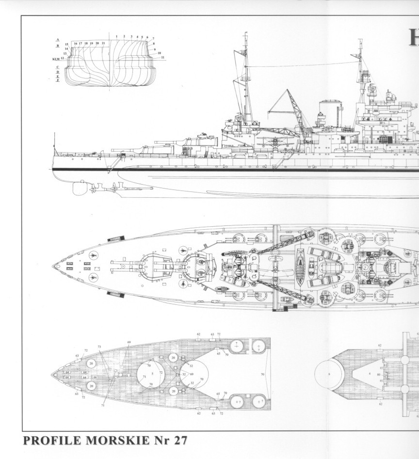 正常排水量:29150吨/满载排水量:33020吨;1937年改装后正常排水量:32468吨/满载排水量:36300吨。