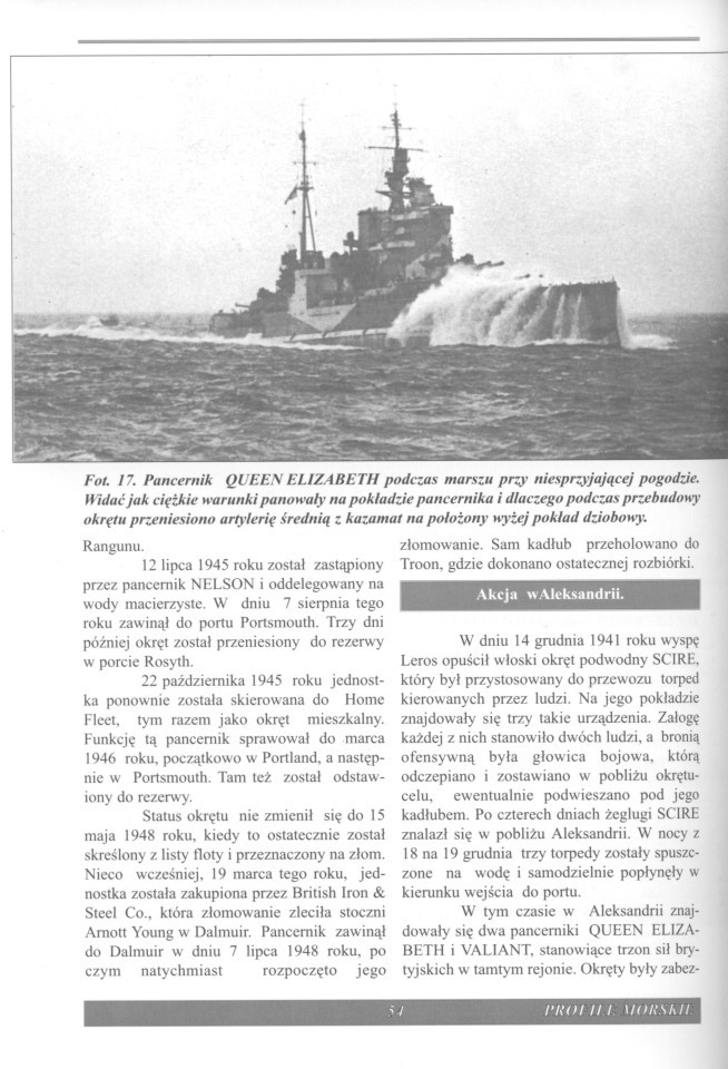 模现代化改装。1941.12.19在埃及亚历山大港内被炸沉(搁浅),1941.12打捞,1943.5在南非西蒙斯顿修复。1945.7退役,1948.3.19出售解体。