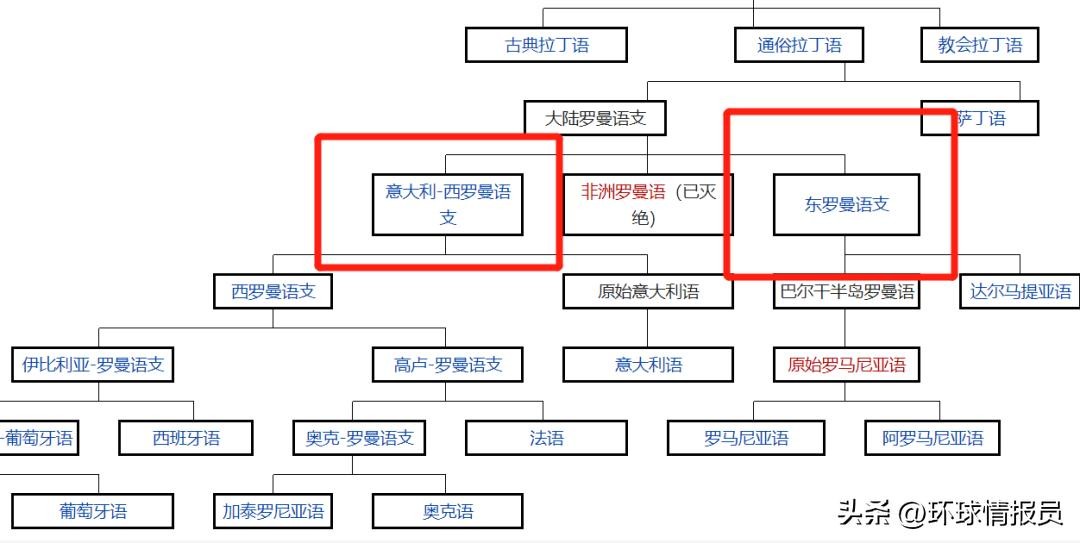 ▲拉丁语分化。高卢-罗曼语支是高卢-拉丁语分化而来